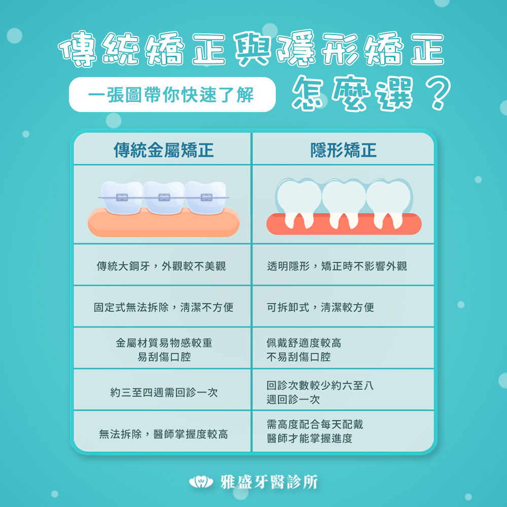 傳統矯正 vs 隱形矯正比較表